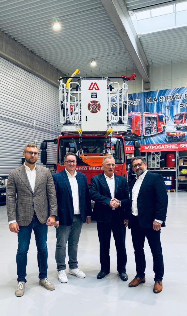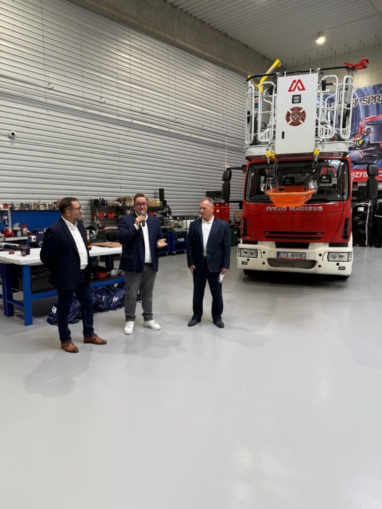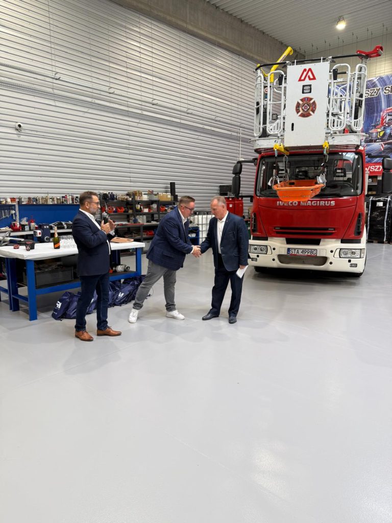 Gratulujemy kolegom nowych stanowisk i zapraszamy do naszej nowej siedziby, wyposażonej m.in. w dużą halę serwisową dla drabin Magirus, nowoczesne biuro i zaplecze serwisowe dla narzędzi ratowniczych.